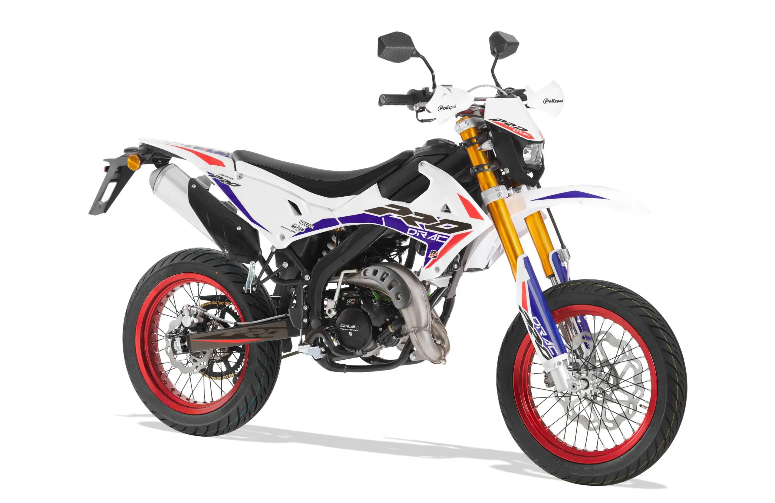 Drac SM PRO Competition Vit med den aggressiva färg- och dekalsättningen fullbordar Competition Pro-familjen. Detta är ett fordon för den aktiva föraren som sticker ut över det vanliga, framtagen endast för den svenska och finska marknaden. Design i toppnivå där motorvalet självklart är Minarellis AM6-motor med den 6-växlade lådan, en mycket pålitlig och uthållig 2-taktare. Utrustad med ett antal handplockade komponenter från prestigefyllda tillverkare. EU-45.