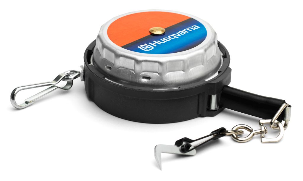 Måttbandet öppnas enkelt med ett handgrepp, helt utan skruvar, för enkelt byte av fjäderband eller fjäder. Måttbandet har markeringar på båda sidor.
