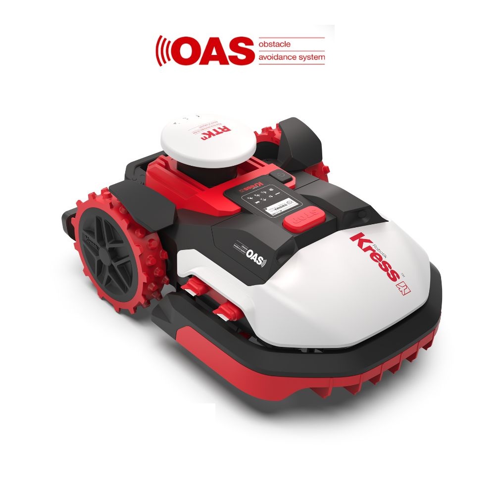 Robotgräsklipparen KR230E omdefinierar precisionen inom gräsklippning med Kress RTKⁿ-teknik och introducerar satellitstyrd precision på centimeternivå utan behov av fastighetsspecifika stationära antenner. KR230E är utrustad med rakbladsvassa knivar i dubbla lager och ett system för att undvika hinder, vilket gör att den fungerar effektivt under alla förhållanden. Kress Obstacle Avoidance System (OAS) säkerställer att gräsklipparen navigerar med precision runt varje utmaning som terrängen erbjuder.